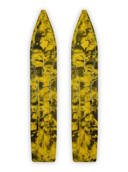 Pair Of Black/Yellow Multi Color Swirl Slydog Powder Hound 8″ Snowmobile Skis