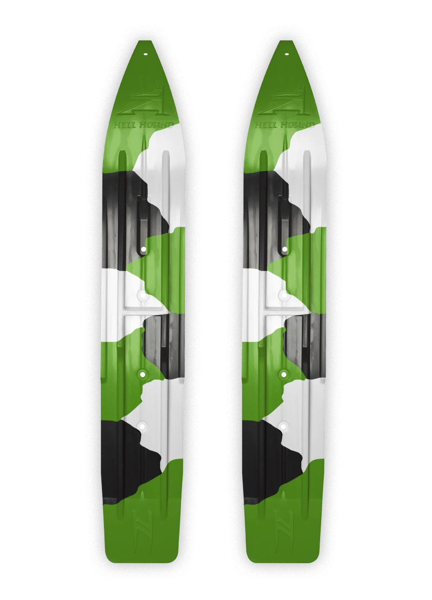 Pair Of Green/White/Black Urban Camo Slydog Hell Hound 7-1/4″ Snowmobile Skis