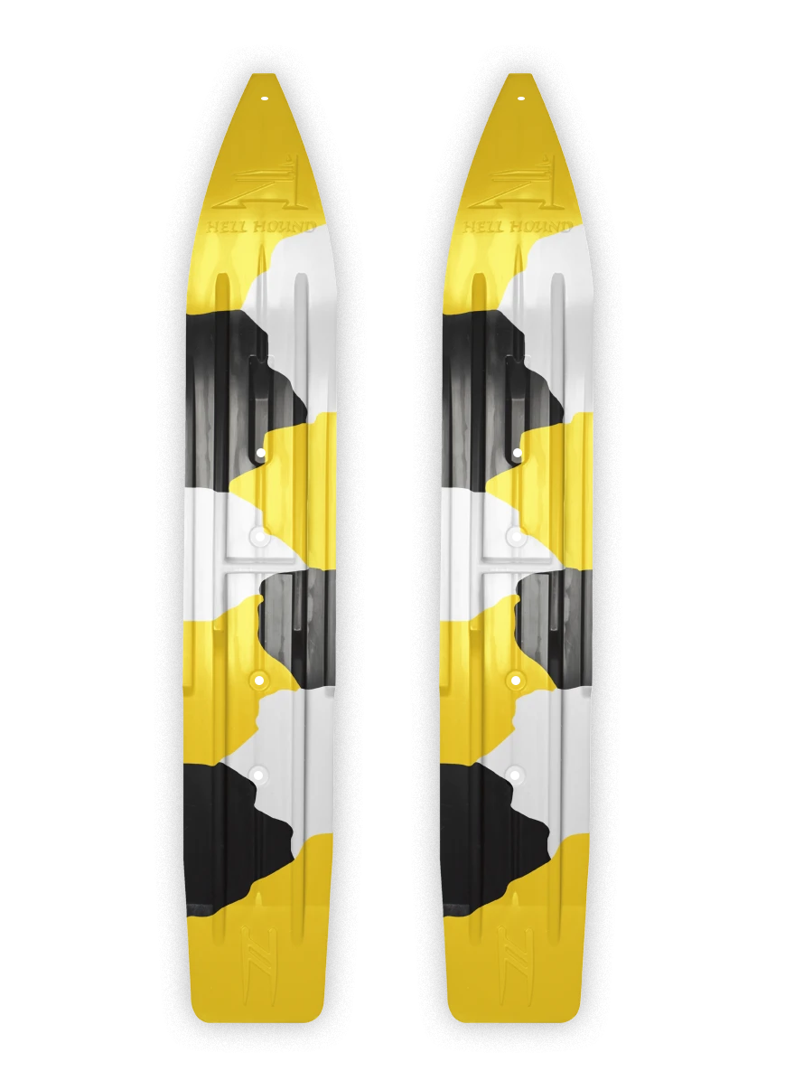 Pair Of Yellow/White/Black Urban Camo Slydog Hell Hound 7-1/4″ Snowmobile Skis